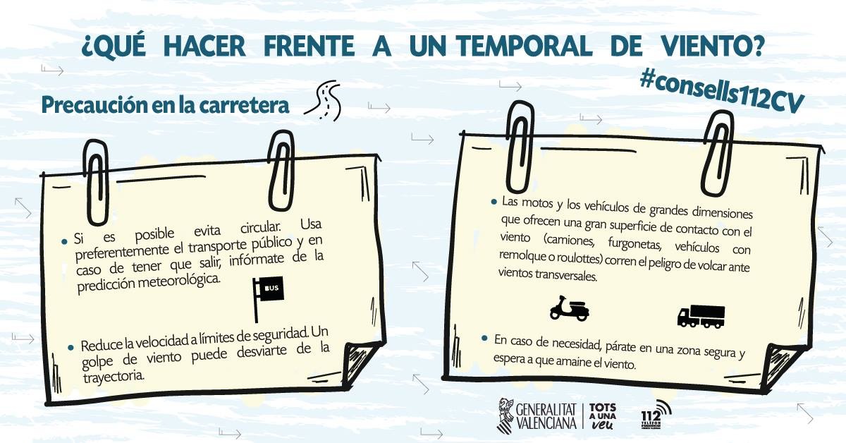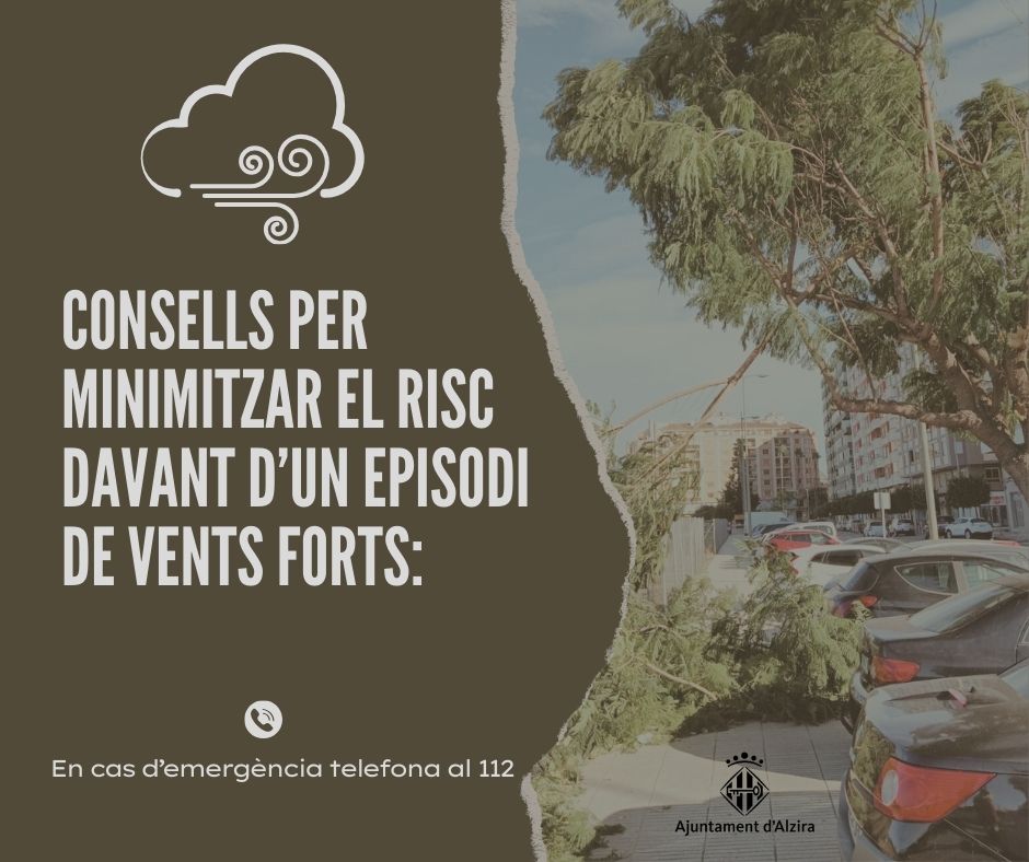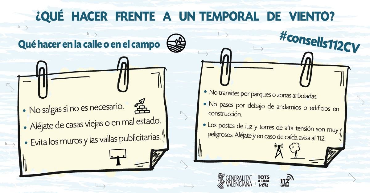Davant la possible intensificació de les ratxes de fort vent fins a la mitjanit de hui, es recomana a la ciutadania seguir les següents mesures preventives i d’autoprotecció per a reduir el nombre de successos en esta mena de situacions meteorològiques que són difícils de combatre.