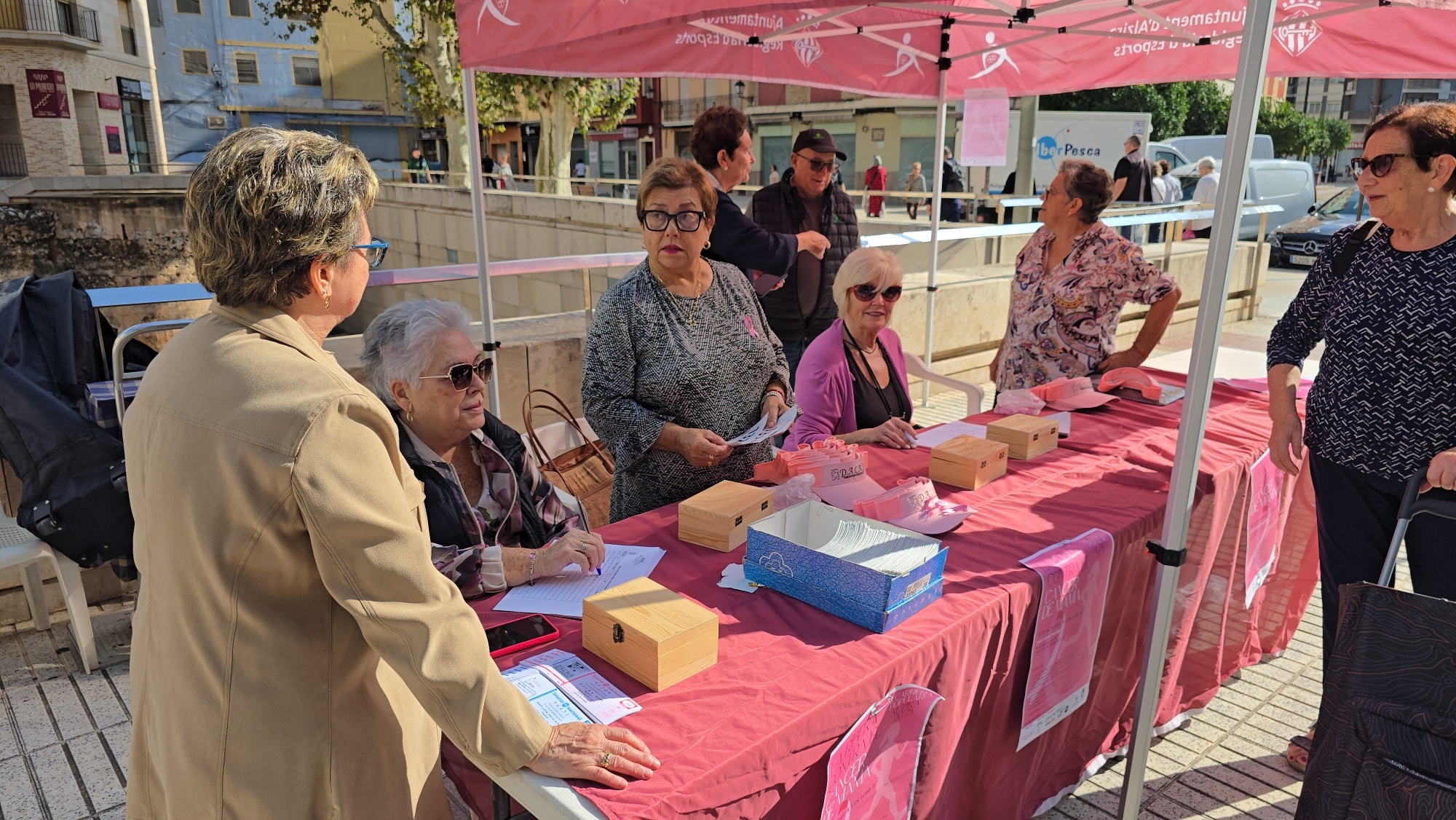 La Asociación de Mujeres Afectadas de Cáncer de Mama de Alzira, DACMA, ha instalado este miércoles una parada informativa en el mercado municipal con el objetivo de vender dorsales para la tradicional carrera solidaria contra el cáncer, que tendrá lugar este sábado 18 de octubre en las calles de la ciudad.