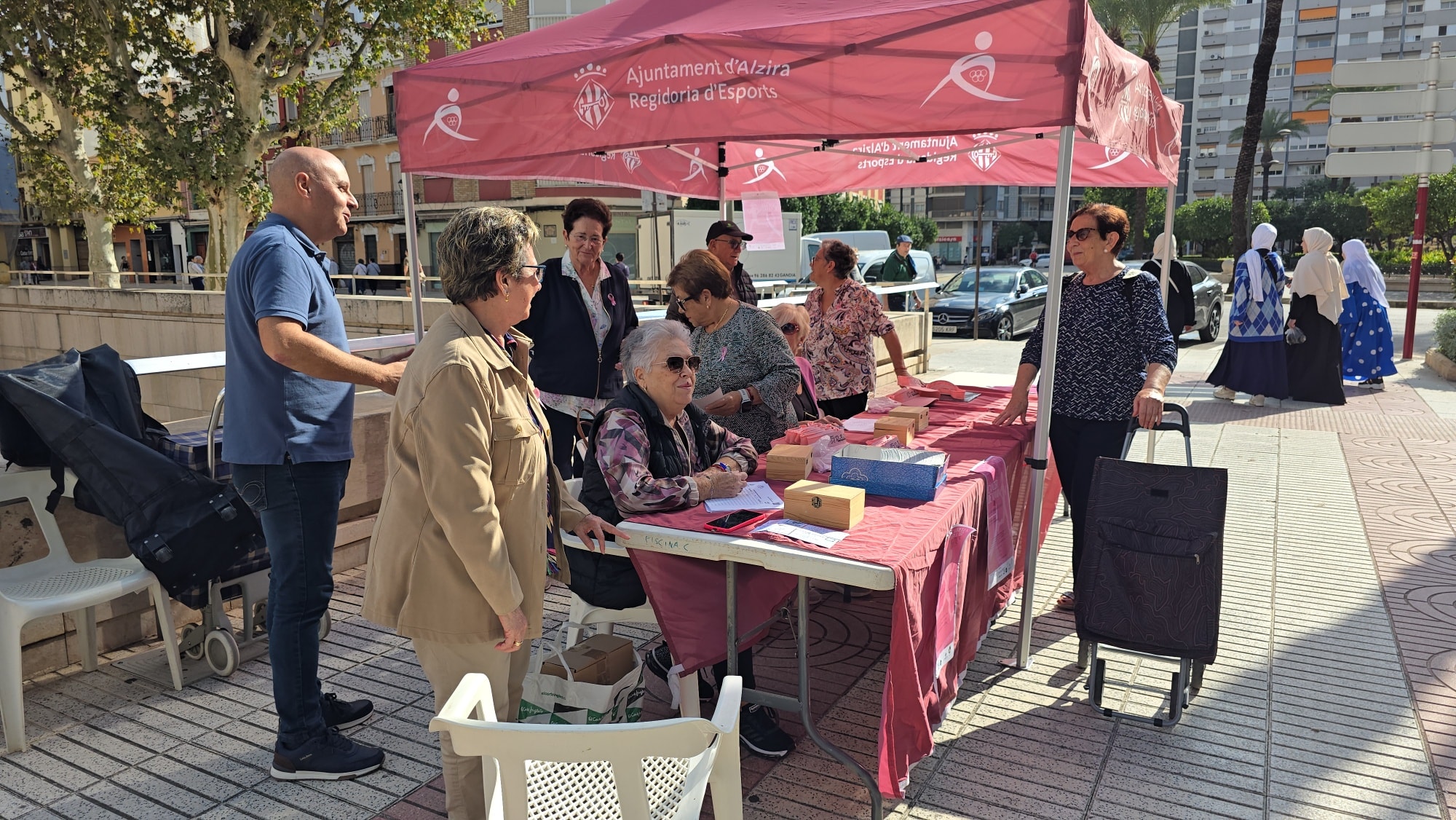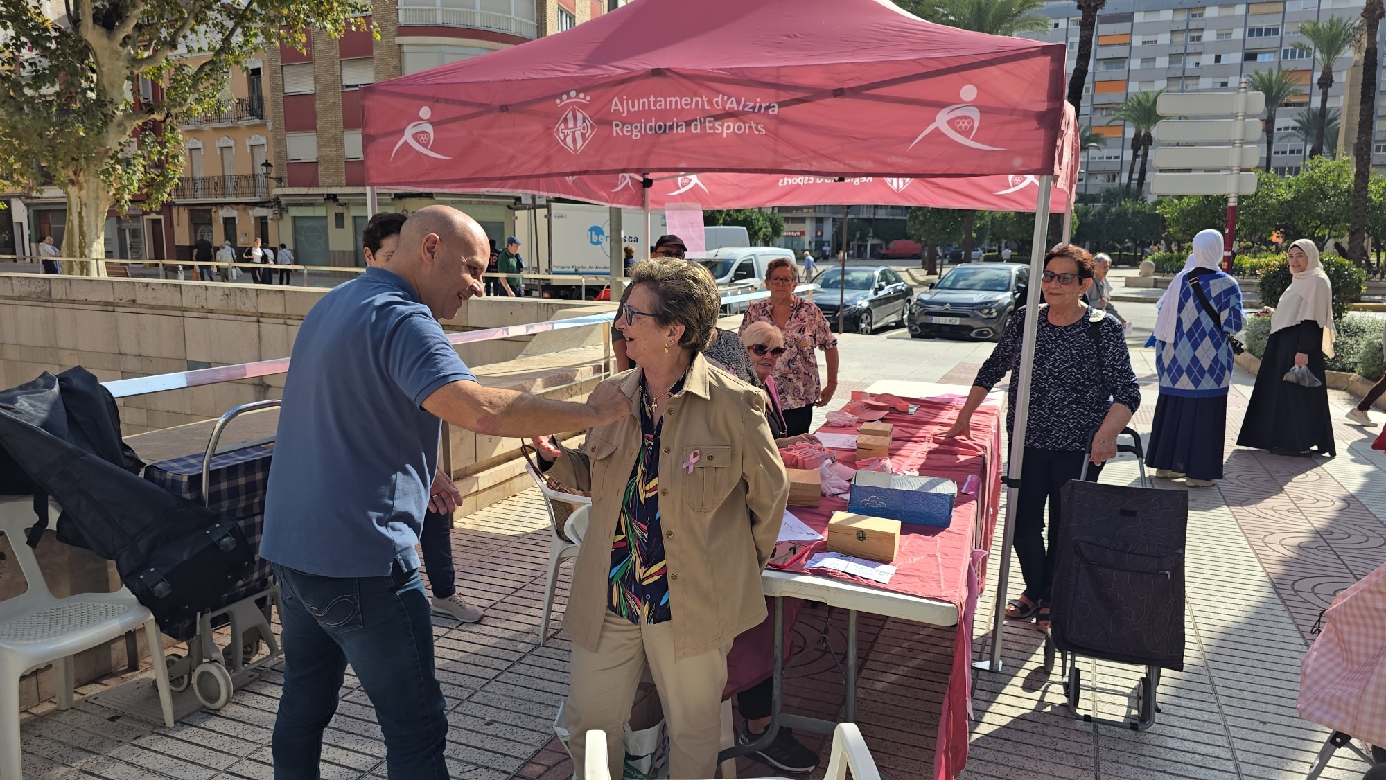 DACMA vende dorsales en el mercado de Alzira para la carrera solidaria contra el cáncer