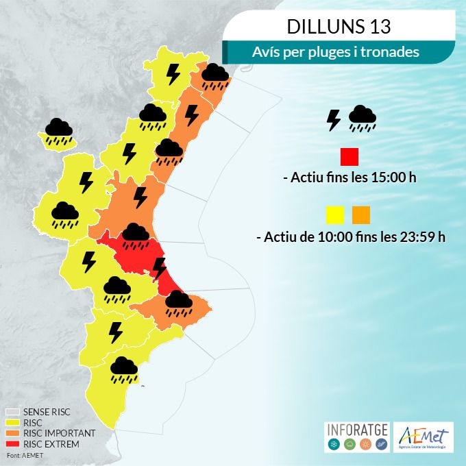 L’avís roig decretat per Aemet al litoral sud de València en estos moments, és corresponent a les tronades severes produ